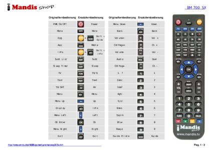Ein Dokument ist enthalten, um die Verwendung der neuen Fernbedienung zu erleichtern, indem es die Tastenbelegung zeigt.