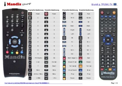 Ein Dokument ist enthalten, um die Verwendung der neuen Fernbedienung zu erleichtern, indem es die Tastenbelegung zeigt.