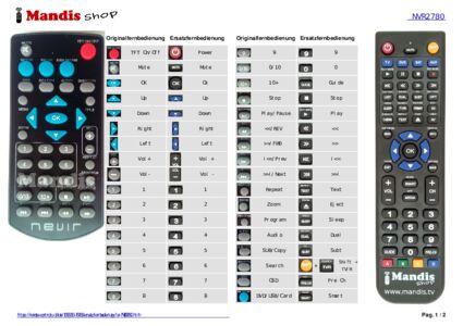 Ein Dokument ist enthalten, um die Verwendung der neuen Fernbedienung zu erleichtern, indem es die Tastenbelegung zeigt.