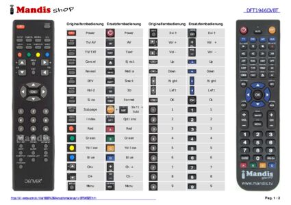 Ein Dokument ist enthalten, um die Verwendung der neuen Fernbedienung zu erleichtern, indem es die Tastenbelegung zeigt.