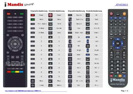 Diese Fernbedienung ersetzt die meisten Funktionen Ihres ATVS55915. Es ist keine Universalfernbedienung, sondern eine Kopie mit den meisten Tasten und Funktionen Ihres Originals.