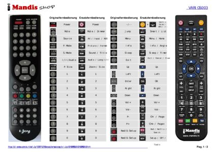 Ein Dokument ist enthalten, um die Verwendung der neuen Fernbedienung zu erleichtern, indem es die Tastenbelegung zeigt.