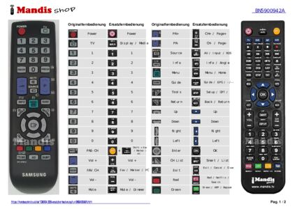 Ein Dokument ist enthalten, um die Verwendung der neuen Fernbedienung zu erleichtern, indem es die Tastenbelegung zeigt.