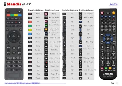Ein Dokument ist enthalten, um die Verwendung der neuen Fernbedienung zu erleichtern, indem es die Tastenbelegung zeigt.