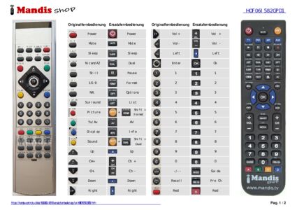 Ein Dokument ist enthalten, um die Verwendung der neuen Fernbedienung zu erleichtern, indem es die Tastenbelegung zeigt.