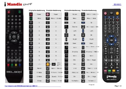 Ein Dokument ist enthalten, um die Verwendung der neuen Fernbedienung zu erleichtern, indem es die Tastenbelegung zeigt.
