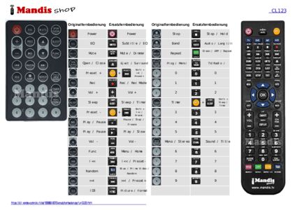 Diese Fernbedienung ersetzt Ihre CL123 in vollem Umfang und bietet alle Funktionen des Originals.