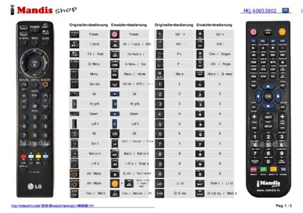 Ein Dokument ist enthalten, um die Verwendung der neuen Fernbedienung zu erleichtern, indem es die Tastenbelegung zeigt.