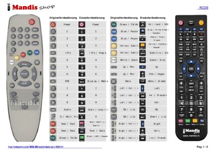 Ein Dokument ist enthalten, um die Verwendung der neuen Fernbedienung zu erleichtern, indem es die Tastenbelegung zeigt.