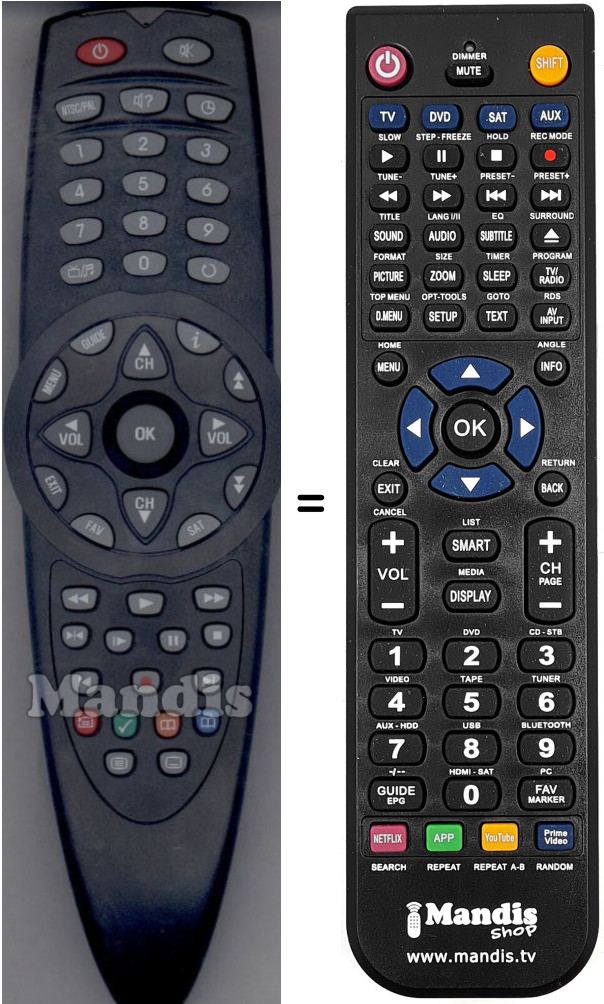 Es handelt sich jedoch nicht um eine Universalfernbedienung sondern um eine Fernbedienung die das Original ersetzt.