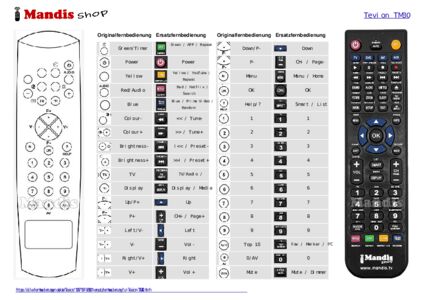 Ein Dokument ist enthalten, um die Verwendung der neuen Fernbedienung zu erleichtern, indem es die Tastenbelegung zeigt.