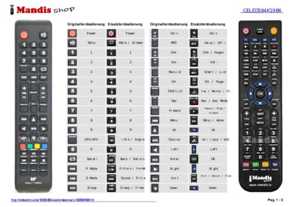 Diese Fernbedienung ersetzt Ihre CELED554K20B6 in vollem Umfang und bietet alle Funktionen des Originals.