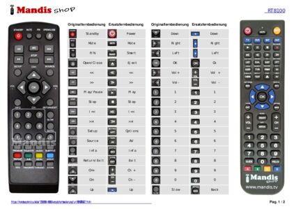 Ein Dokument ist enthalten, um die Verwendung der neuen Fernbedienung zu erleichtern, indem es die Tastenbelegung zeigt.