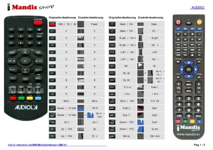 Ein Dokument ist enthalten, um die Verwendung der neuen Fernbedienung zu erleichtern, indem es die Tastenbelegung zeigt.
