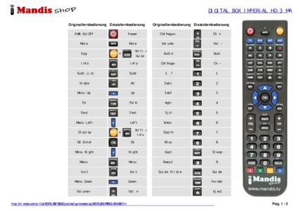 Ein Dokument ist enthalten, um die Verwendung der neuen Fernbedienung zu erleichtern, indem es die Tastenbelegung zeigt.