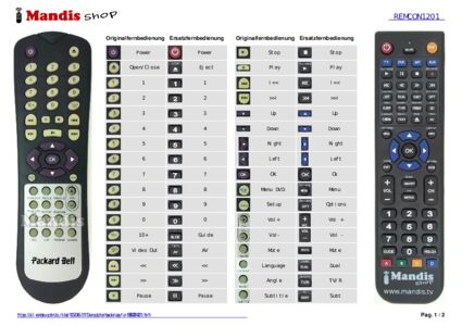 Ein Dokument ist enthalten, um die Verwendung der neuen Fernbedienung zu erleichtern, indem es die Tastenbelegung zeigt.