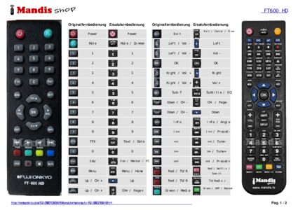 Ein Dokument ist enthalten, um die Verwendung der neuen Fernbedienung zu erleichtern, indem es die Tastenbelegung zeigt.