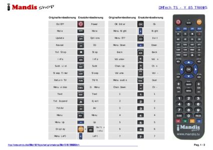 Ein Dokument ist enthalten, um die Verwendung der neuen Fernbedienung zu erleichtern, indem es die Tastenbelegung zeigt.