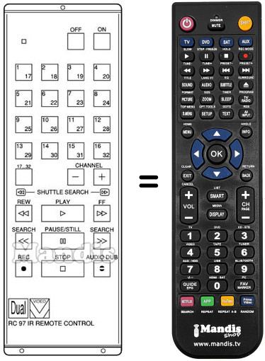 Die Fernbedienung ersetzt das Original RC 97 in der Gesamtheit seiner Funktionen.