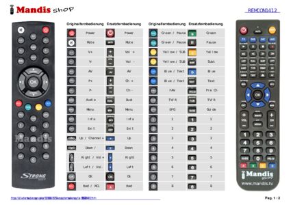 Ein Dokument ist enthalten, um die Verwendung der neuen Fernbedienung zu erleichtern, indem es die Tastenbelegung zeigt.