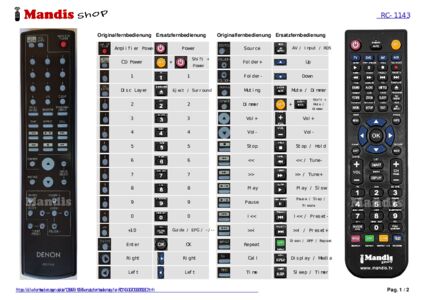 Frage an Denon RC1143 (307010067008D) Fernbedienung