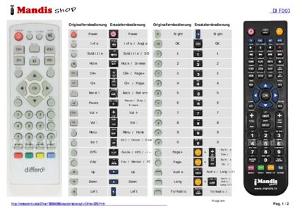 Diese Fernbedienung ersetzt Ihre DIF001 in vollem Umfang und bietet alle Funktionen des Originals.