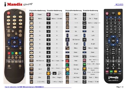 Diese Fernbedienung ersetzt Ihre RC1055 (30054683) in vollem Umfang und bietet alle Funktionen des Originals.