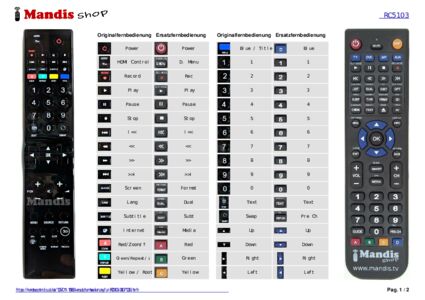 Ein Dokument ist enthalten, um die Verwendung der neuen Fernbedienung zu erleichtern, indem es die Tastenbelegung zeigt.