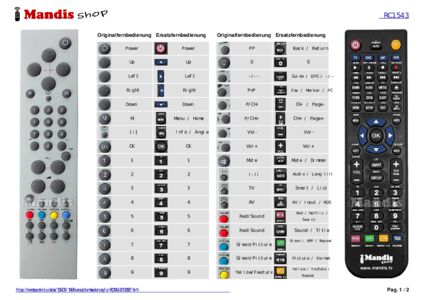 Ein Dokument ist enthalten, um die Verwendung der neuen Fernbedienung zu erleichtern, indem es die Tastenbelegung zeigt.