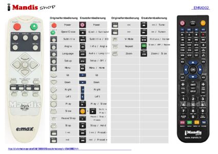 Diese Fernbedienung ersetzt Ihre EMAX002 in vollem Umfang und bietet alle Funktionen des Originals.