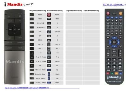 Home > Marken > Fernbedienungen EDIFIER > Fernbedienung für EDIFIER S2000MKIII