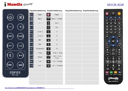 Home > Marken > Fernbedienungen EDIFIER > Fernbedienung für EDIFIER RC10E