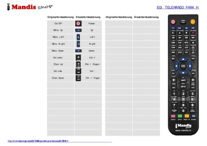 Ein Dokument ist enthalten, um die Verwendung der neuen Fernbedienung zu erleichtern, indem es die Tastenbelegung zeigt.