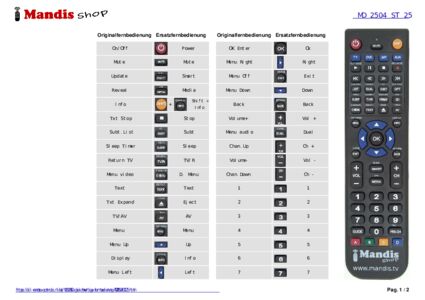 Ein Dokument ist enthalten, um die Verwendung der neuen Fernbedienung zu erleichtern, indem es die Tastenbelegung zeigt.