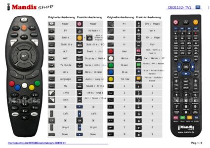 Ein Dokument ist enthalten, um die Verwendung der neuen Fernbedienung zu erleichtern, indem es die Tastenbelegung zeigt.