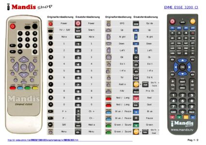 Ein Dokument ist enthalten, um die Verwendung der neuen Fernbedienung zu erleichtern, indem es die Tastenbelegung zeigt.