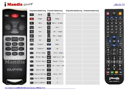 Ein Dokument ist enthalten, um die Verwendung der neuen Fernbedienung zu erleichtern, indem es die Tastenbelegung zeigt.