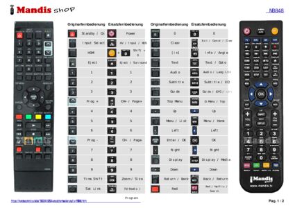 Ein Dokument ist enthalten, um die Verwendung der neuen Fernbedienung zu erleichtern, indem es die Tastenbelegung zeigt.
