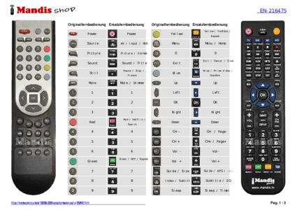Diese Fernbedienung ersetzt Ihre EN21647 in vollem Umfang und bietet alle Funktionen des Originals.