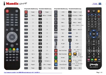 Ein Dokument ist enthalten, um die Verwendung der neuen Fernbedienung zu erleichtern, indem es die Tastenbelegung zeigt.