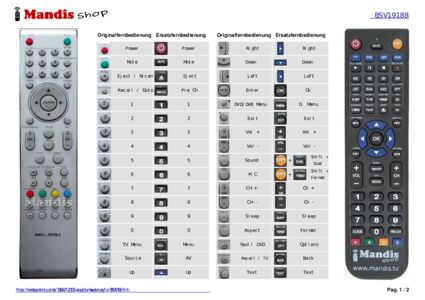 Ein Dokument ist enthalten, um die Verwendung der neuen Fernbedienung zu erleichtern, indem es die Tastenbelegung zeigt.