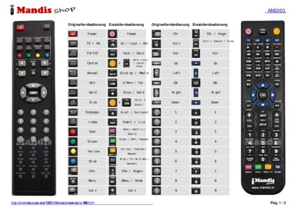 Ein Dokument ist enthalten, um die Verwendung der neuen Fernbedienung zu erleichtern, indem es die Tastenbelegung zeigt.
