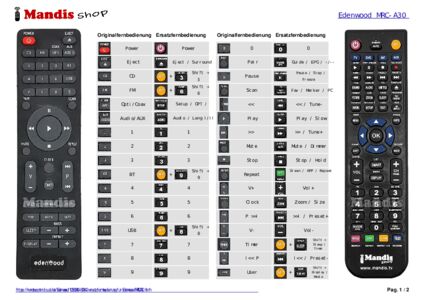 Diese Fernbedienung ersetzt Ihre MRCA30 in vollem Umfang und bietet alle Funktionen des Originals.