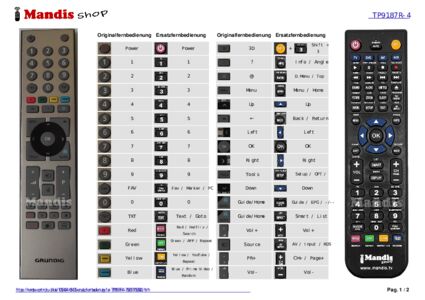 Ein Dokument ist enthalten, um die Verwendung der neuen Fernbedienung zu erleichtern, indem es die Tastenbelegung zeigt.