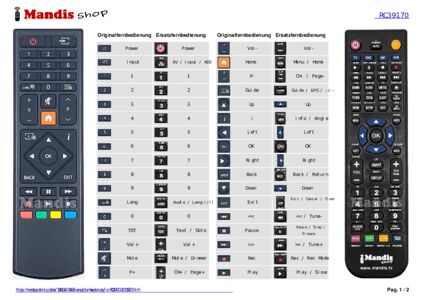 Ein Dokument ist enthalten, um die Verwendung der neuen Fernbedienung zu erleichtern, indem es die Tastenbelegung zeigt.
