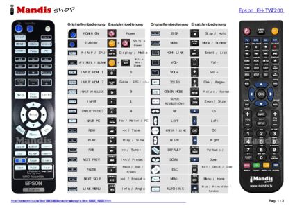 Home > Marken > Fernbedienungen Epson > Fernbedienung für Epson EH-TW7200
