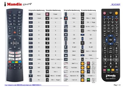 Diese Fernbedienung ersetzt Ihre RC4590P (30109149) in vollem Umfang und bietet alle Funktionen des Originals.