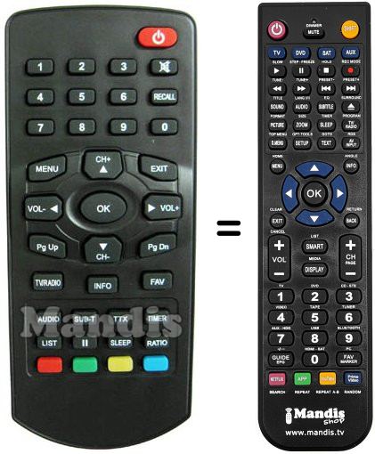 Fernbedienung, die das Original und die Gesamtheit seiner Funktionen, vollständig ersetzt. Es handelt sich jedoch nicht um eine Universalfernbedienung sondern um eine Fernbedienung die das Original ersetzt. Sie erhalten eine nach Einlegen der Batterien sofort einsatzbereite Fernbedienung. Jegliches Programmieren entfällt. Wir geben umfassende Garantie dafür, dass diese Fernbedienung alle Funktionen der Originalfernbedienung erfüllt.