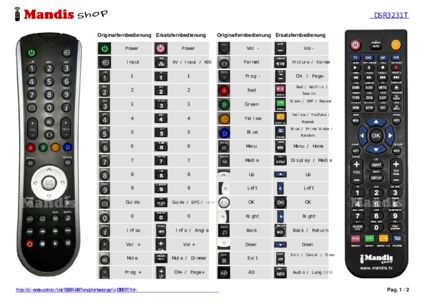 Ein Dokument ist enthalten, um die Verwendung der neuen Fernbedienung zu erleichtern, indem es die Tastenbelegung zeigt.