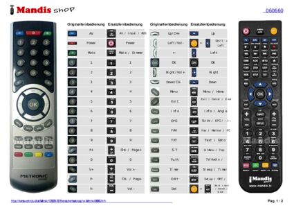 Ein Dokument ist enthalten, um die Verwendung der neuen Fernbedienung zu erleichtern, indem es die Tastenbelegung zeigt.